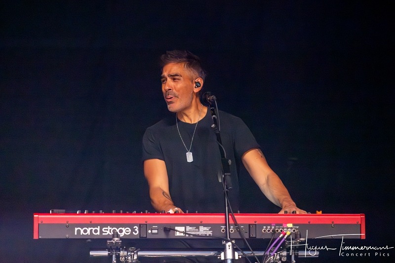 Alter Bridge affiche la couleur dès sa montée sur scène avec « Silent Divide », issu de leur nouvel album, suivi de « Addicted to Pain », « Cry Of Achilles », « Playing Aces ». C’est puissant, très puissant ; on ne fait pas dans la dentelle, et le groupe est en très grande forme. « Fortress » vient légèrement calmer les choses, tout comme « Burn It Down » où Mark Tremonti prend la relève de Myles Kennedy au chant.