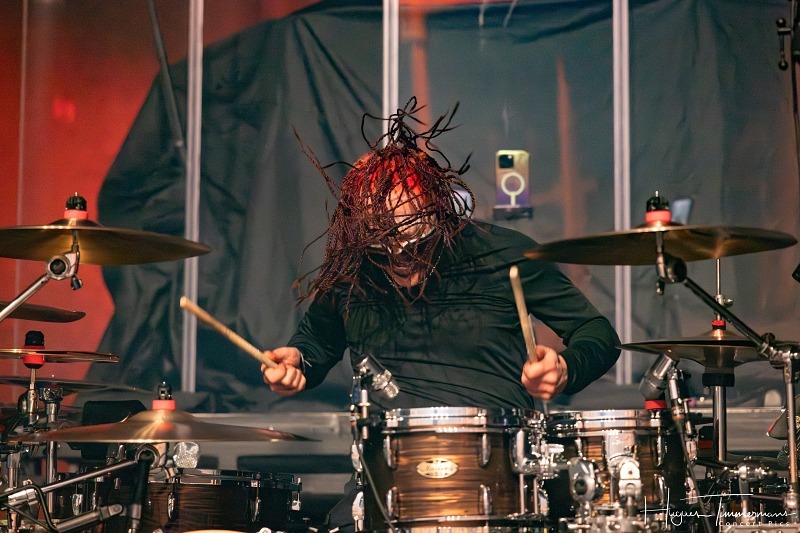 Je ne connaissais pas vraiment Sevendust avant de les voir – certainement une lacune de ma part. Leur set n’a duré qu’une bonne demi-heure, mais le groupe mené, par Lajon Witherspoon, nous a offert un moment d’énergie brute et sincère. La salle n’était pas encore remplie, mais le public a répondu présent avec une grande ferveur. Witherspoon s’est montré très touché, voire ému, devant un tel accueil : « A dream come true ». J’ai été particulièrement impressionné par le batteur Morgan Rose, dont le jeu est d’une incroyable finesse alors qu’il frappe les fûts comme si sa vie en dépendait. Sevendust sortira leur quinzième album « One » le premier mai 2026, et le groupe nous a gratifié du premier single « Is This The Real You » – ça promet!
