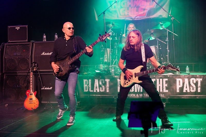 C’est ensuite la formation batave Highway Chile qui s’empare de la scène pour régaler les festivaliers de son hard rock t heavy metal old school. Les Néerlandais font un retour remarqué en 2025 avec la sortie de l’album « Rat Race« , dont trois morceaux seront présentés ici. Le groupe est prend visiblement beaucoup de plaisir à être là. Le chanteur Stan Verbraak a un petit look qui fait penser à Ian Gillan un peu plus jeune. Rappelons qu’il a aussi été chanteur du groupe Helloïse dont plusieurs morceaux se retrouvent sur la setlist. Musicalement, le groupe assure et propose une musique de qualité, très au goût du public, avec notamment « Highway Chile Is Comin’ to Get Ya« , « Jesse James« , « Carol« , « Rat Race« , « Rock and Roll Fantasy« , « Gates of Heaven« (cover du groupe Helloïse), « Destination » (cover du groupe Helloïse), « Hard Life » (cover du groupe Helloïse), « Wasted Years » et « Dreaming of Heaven« . Un de mes coups de coeurs du jour!
