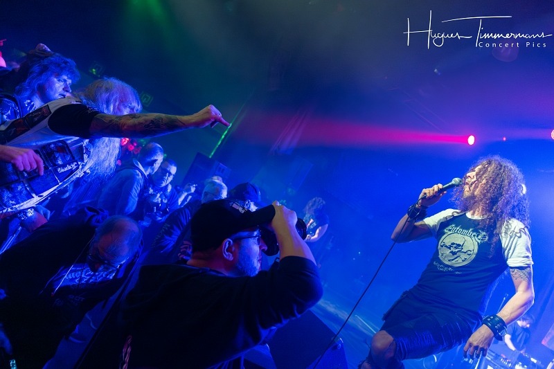 Fondé à Los Angeles en 1982, Savage Grace a fait le déplacement au Blast From The Past pour enregistrer sa prestation en live. Du coup, pas de photos dans le pit pour permettre une bonne captation live. Le show des métalleux made in the US est agrémenté de pétards assourdissants et d’un jeu de lumière assez rudimentaire fait de fumée et d’un éclairage assez minimaliste. Étonnant pour une captation. Le chanteur monte encore haut dans les aigus, mais son jeu de scène est assez répétitif. Se sachant filmés, ses camarades de jeu ont tendance à surjouer les mimiques pour la postérité. Quant à la musique proprement dite, le volume est très élevé et le son manque cruellement de nuance. Bref, une déception pour ma part, malgré une setlist intéressante: « Barbarians at the Gate« , « Automaton« , « Bound to Be Free« , « Fear my Way« , « After the Fall From Grace« , « Sign of the Cross« , « Star Crossed Lovers« , « Slave of Desire« , « Sins of the Damned« , « We Came, We Saw, We Conquered » et « Master of Disguise« .