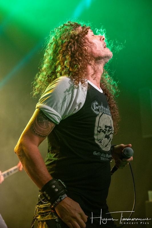 Retour dans la grande salle où le set de Toxikull en est déjà largement entamé. J’arrive juste à temps pour entendre un hommage à Motörhead. La formation portugaise créée en 2016 affiche un bon niveau, mais je n’entre que moyennement dans leur trip. Je suis cependant agréablement surpris par le batteur qui livre une excellente performance.