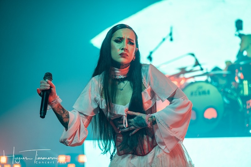 Dès les premiers instants, l’ambiance est chaude bouillante. Très vite, le quatuor démontre ce qui fait sa singularité : une combinaison redoutable de précision instrumentale et d’expressivité viscérale. Les guitares ciselées s’entrelacent à des rythmiques complexes, tandis que la présence scénique du groupe, et surtout de sa vocaliste, capte sans peine l’attention. Au centre de cette mécanique parfaitement huilée, Tatiana Shmayluk, telle une Carmen version metal, impressionne par sa polyvalence vocale, passant sans effort apparent de registres agressifs à des passages plus nuancés, avec une assurance qui force le respect. La musique est puissante et entraînante. Bien vite, le parterre se transforme en mosh pit où les pogos et crowdsurfeurs vont mobiliser l’attention de la sécu sans discontinuer jusqu’à la fin du concert.