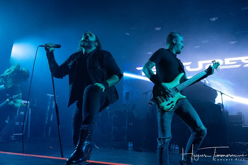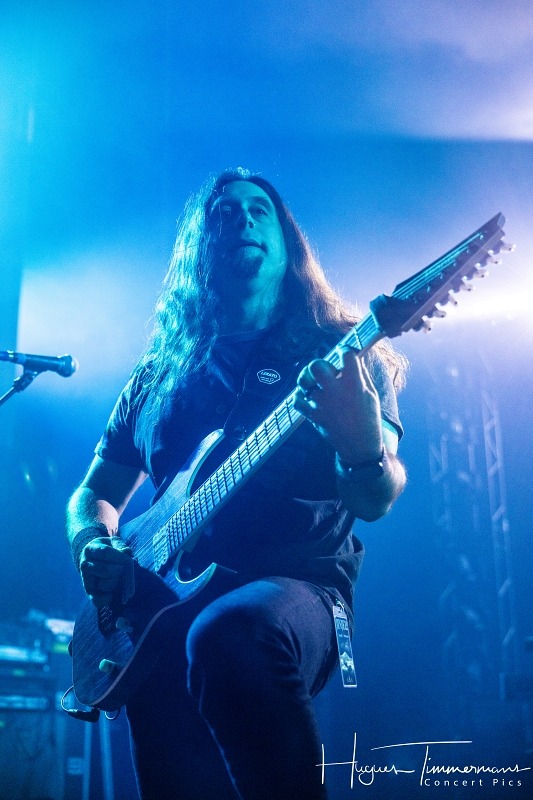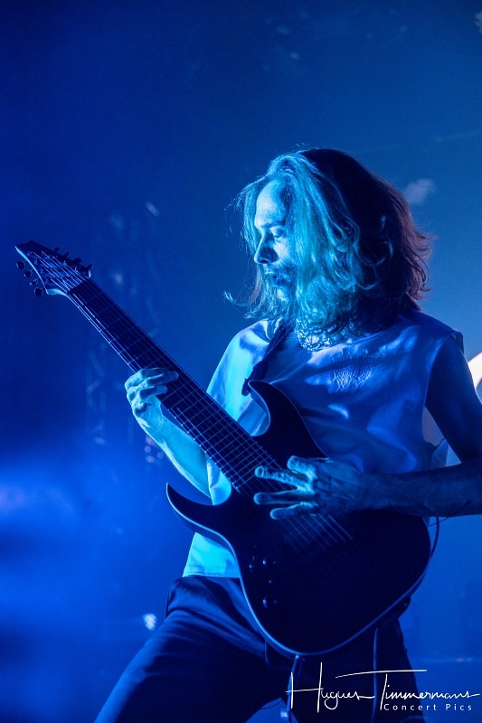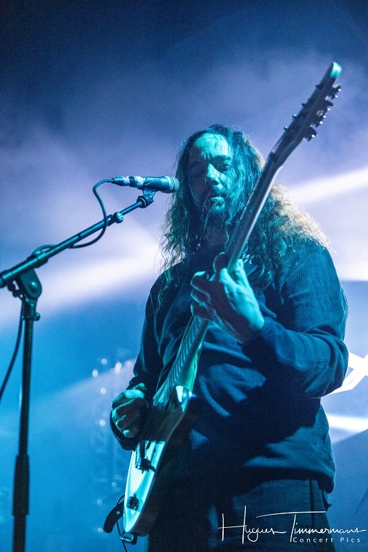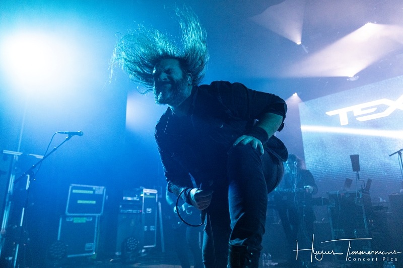 Dimanche 25 janvier 2026. Vers 18h45, la scène s’éclaire tout en bleu devant une salle déjà remplie aux trois quarts pour accueillir le premier groupe de la soirée, les Néerlandais de Textures. Il est d’ailleurs étonnant de retrouver en ouverture de programme ces titans du metal progressif. Formé en 2001, le groupe originaire de Tilburg a créé un répertoire mathcore, mâtiné d’éléments de metalcore, death metal et thrash metal, avec une voix légèrement plus ‘hardcore’ que dans d’autres groupes du même genre.