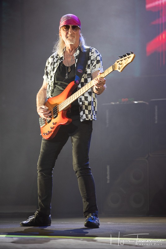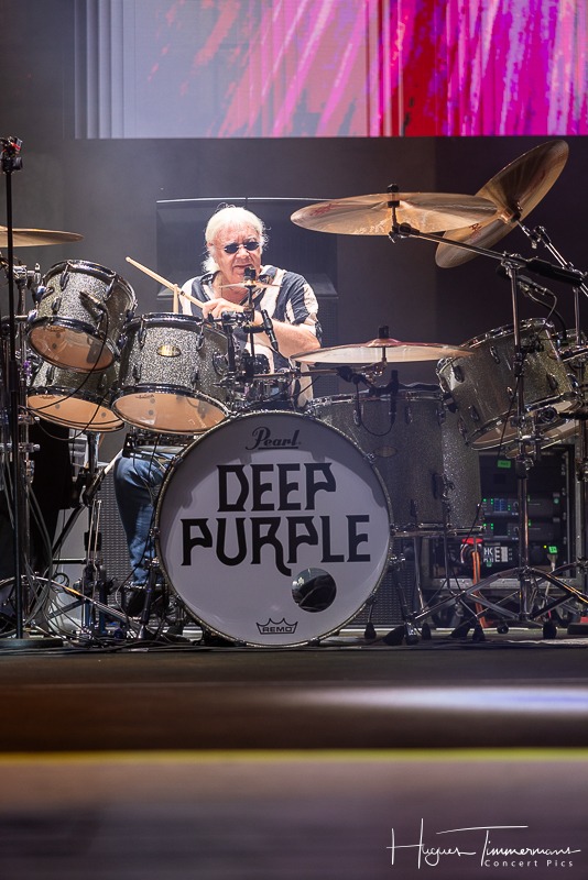 Vers 21h30, le public a chaud. Une vidéo tourne depuis quelques minutes, rappelant la sortie du 23e album de Deep Purple, intitulé « =1 » et sorti le 19 juillet dernier. Cette vidéo annonce la tournée comme « 1 More Time Tour« , ce qui pourrait donner à penser que les titans du rock sont revenus pour un dernier tour d’honneur à la rencontre de les innombrables fans toutes générations confondues. Depuis sa création en 1968, le groupe a toujours été composé de cinq musiciens : un chanteur, un guitariste, un claviériste, un batteur, et un bassiste. Impossible de résumer ici les nombreuses allées et venues de grandes pointures ayant occupé chacun de ces postes. Contentons-nous de rappeler que Deep Purple (Mark IX) se compose ce soir du batteur Ian Paice (seul membre original du groupe), du bassiste émérite Roger Glover, du claviériste Don Airey (qui succéda avec talent au défunt Jon Lord), du chanteur Ian Gillan (qui taquine aussi les tambourins et l’harmonica) ainsi que du petit nouveau, le guitariste Simon McBride qui n’hésite pas à faire entendre sa voix dans les chœurs.