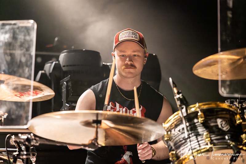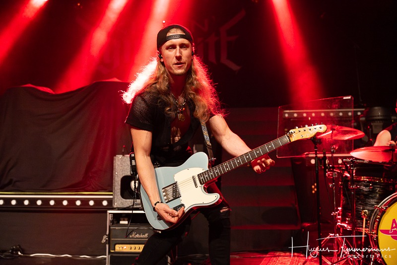 La scène du Trix, qui n’est pourtant pas petite, semble à peine suffire pour contenir la débauche d’énergie du groupe sur scène, et surtout de son chanteur tatoué Barry. C’est un tsunami hardrock aux accents punk qui déferle sur le public qui participe à la fête avec une fougue qui compense largement le manque d’affluence à cette heure de la soirée. Au menu, une dizaine de titres plus punchy les uns que les autres: « Missing on TV » (extrait de l’album « Earth To Grace » qui sortira le 8 novembre 2024), le très remuant « Generation Prime » (2022), « Fun While it Lasted » (2024), le presque Motorheadien « Sleep Forever » (2024), le très actuel « Fuck the Haters » (2022), « The Good Die Young » (2024), le très radiophonique « Night Skies » (2024), « House of Noise » (extrait de l’album « House of Noise » de 2020), le véritable hymne hard rock « Bangin in Your Stereo » (2020) et « In It Together » (2020). Autant vous dire qu’à en croire nos yeux et nos oreilles durant cette prestation d’anthologie, l’album « Earth To Grace » a tout ce qu’il faut pour faire un carton auprès des amateurs de rock survitaminé flirtant parfois avec le thrash.