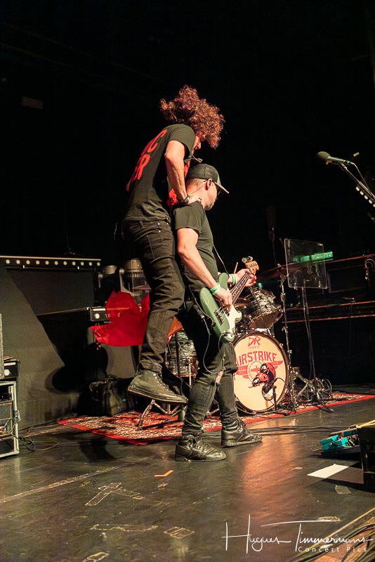 La soirée commence avec le quatuor allemand Airstrike que l’on peut classer dans la catégorie ‘New Wave Of Classic Rock‘. Composé de quatre amis proches qui partagent une passion commune pour le rock ‘n’ roll et la musique énergique, le groupe a vu le jour en 2017 et s’est fait connaître au niveau local. En 2021, le groupe accueille en son sein le chanteur péruvien Julio Noriega qui va contribuer à renforcer l’identité musicale du groupe, notamment grâce à ses excellentes performances en live. Nous étions donc très curieux de les découvrir sur la scène du Trix.