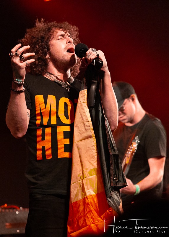 Le groupe compte déjà deux albums à son actif: « Red Born Reborn » sorti en 2023 et « S*x Sells » qui a suivi en septembre dernier. Ce sont donc des titres de ces deux albums qui composent la setlist: « Soul Right » (2024), « Rollin‘ » (2023), « Promised Land » (2024), la sublime pépite et le potentiel grand classique « Beyond the way » (2023) , « One in a million » (2023) et « Motor Ride » (2024). Julio Noriega a une voix parfaite pour incarner ces titres de rock classique remis au goût du jour. Ces morceaux sont pleins de peps et dégagent une belle énergie. Le chanteur y est pour beaucoup, même si les musiciens ne sont pas en reste! Il s’essaiera même à quelques paroles en français pour remercier le public encore très clairsemé pour cette première partie. Les absents ont toujours tort, dit le proverbe. Ce soir, c’était encore plus le cas que jamais et les retardataires ne peuvent que regretter d’avoir loupé l’occasion de découvrir un groupe très dynamique qui réussit le pari de faire du neuf avec du vieux, pour le plus grand bonheur de nos tympans friands de bons riffs de guitare et de titres rock bien catchy.