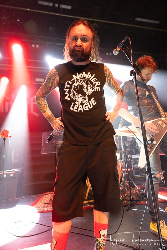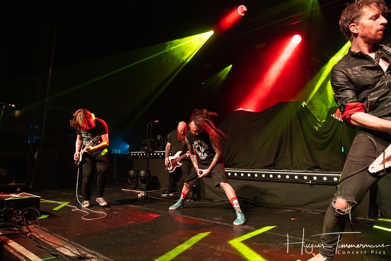 La foule n’est toujours pas fort compacte à l’entrée en scène du deuxième combo de la soirée, le groupe de hard rock britannique Massive Wagons, qui vient faire découvrir au public du Trix son répertoire exquis de titres hard rock aux accents punk assez prononcés. Le résultat est une prestation hypervitaminée, véritable débauche de mouvements sur scène et déferlement musical. Selon les sources que nous avons pu consulter, ce serait après avoir assisté à un concert du groupe australien de rock Airbourne à Manchester que le guitariste Adam Thistlethwaite et le chanteur Barry Mills auraient décidé de se mettre à écrire du hard rock en 2009. Le groupe se compose aussi du batteur Alex Thistlethwaite (le frère d’Adam), du bassiste Adam Bouskill et du second guitariste Stephen Holl. En octobre 2022, le groupe sort son 5e album intitulé « Triggered! » qui se classera à la 6e place des charts au Royaume-Uni.