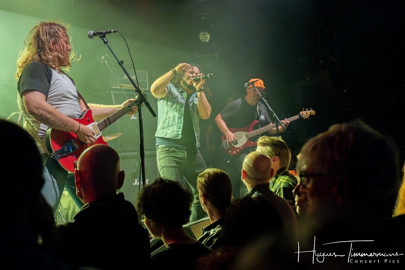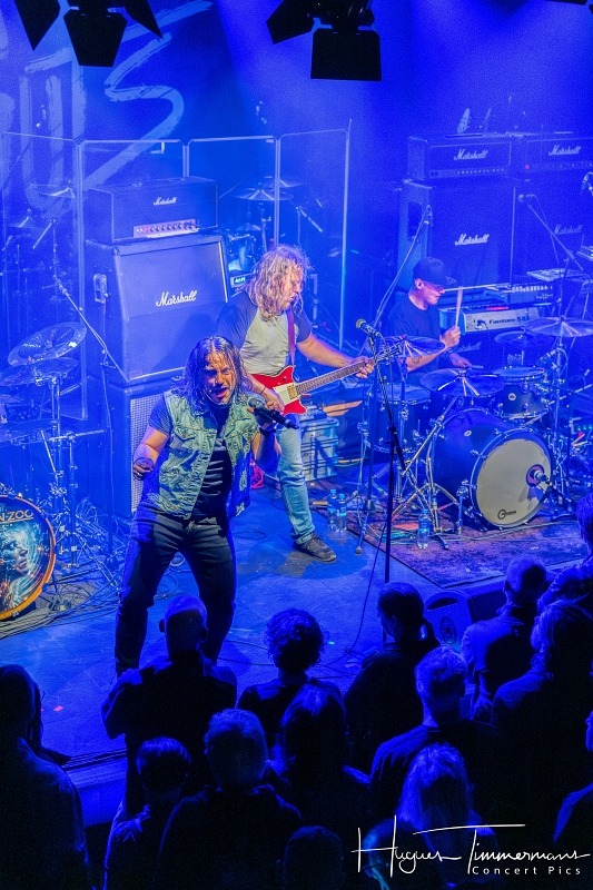 À notre arrivée à De Pul, le temple néerlandais de la musique situé à Uden aux Pays-Bas, la salle est déjà remplie à 80% et le premier groupe est déjà sur scène en train de jouer. C’est le groupe lausanois GUT’s qui chauffe la salle. En tournée européenne hors de ses frontières pour la première fois, GUT’s est l’un des groupes les plus électrisants de la scène rock suisse romande. Son crédo musical se résume en trois principes: sincérité, énergie brute et riffs qui claquent comme un coup de foudre sur un ampli Marshall.