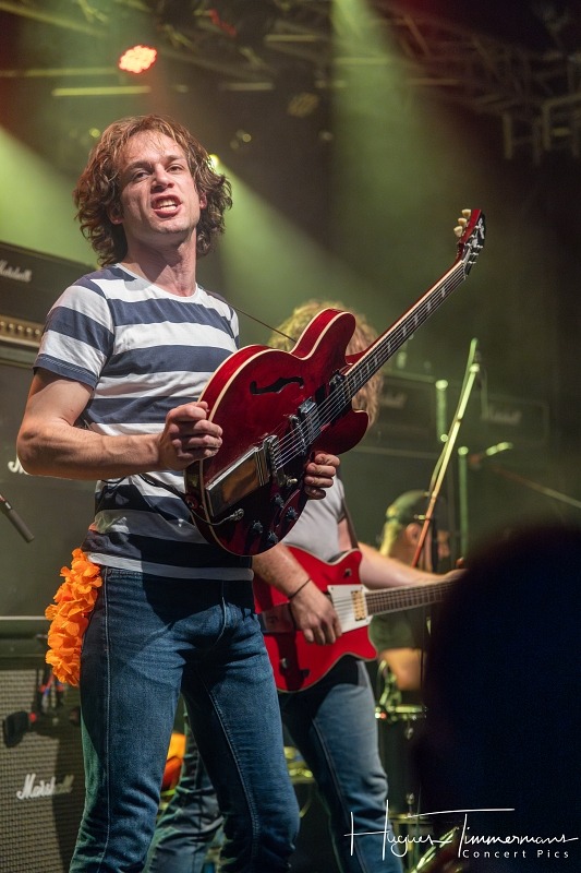GUT’S, c’est un show sans chichis, juste du rock pur, puissant, qui fait vibrer toutes les générations. Leurs influences ? AC/DC ainsi que tout le rock des années 70 qui sent la sueur et la liberté. Sur scène, Benjy et Luca, les deux guitaristes cofondateurs du groupe, assistés du chanteur Freddy, du bassiste Jonas et du batteur Yoann réussissent l’exploit de séduire un public néerlandais venu avant tout pour retrouver l’univers musical d’UFO. Qu’à cela ne tienne, les Helvètes défendent leur musique avec conviction et font mouche à chaque fois: « High as Noise« , « Jump the Gun« , « Danger Stripper« , « Nuts on the Road« , « That Guy« , « Drink to Drink« , « Dirty Squeeze« .
