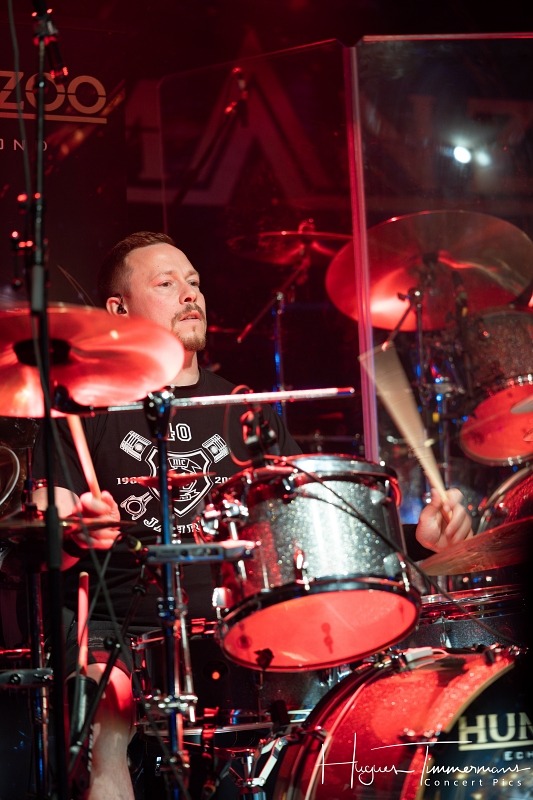 Les roadies s’activent sur scène à tout préparer pour le groupe suivant. En découvrant les backdrops, je me rends compte que ce n’est pas un inconnu au bataillon puisqu’il s’agit de la formation allemande Human Zoo, dont la musique mêle hard rock et saxophone, pour un cocktail unique et énergique. Fondé en 2004 par Thomas Seeburger (chant), Zarko Mestrovic (claviers), Ingolf Engler (guitare), Boris Matakovic (saxophone), Ralf Grespan (basse) et Matthias Amann (batterie), le groupe s’est forgé une solide réputation sur scène aux côtés de pointures comme Scorpions ou Gotthard.