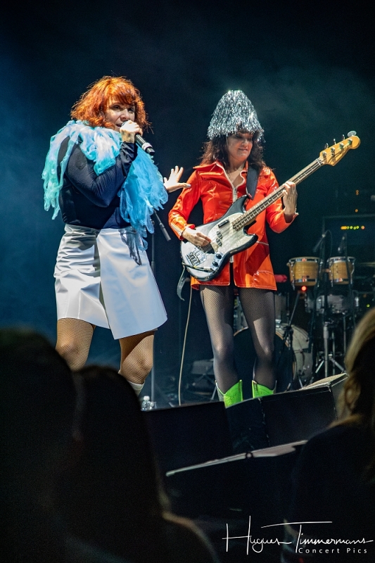 Pour la deuxième partie du set, le public a l’agréable surprise de voir revenir sur scène Mélanie Pain et Phoebe Killdeer, elles aussi très complices et en parfaite symbiose. Les chanteuses historiques du groupe donnent un petit air de fête à cette tournée anniversaire qui permet donc au public de savourer les voix de quatre chanteuses de grand talent pour le prix de deux. Mélanie et Phoebe enchaînent donc avec une série de classiques du groupe: « Just Can’t Get Enough » (2004) de Depeche Mode, « She’s in Parties » (2024) de Bauhaus, « Guns Of Brixton » (2004) de The Clash, « Too Drunk To Fuck » (2004) de Dead Kennedys, « Friday Night Saturday Morning » (2004) de The Specials. Ensuite, les chanteuses vont se succéder pour « This Charming Man » (2024) de The Smiths, « I Melt With You » (2004) de Modern English et « You Spin Me Round » (2024) de Dead Or Alive.