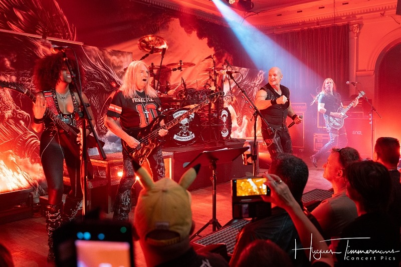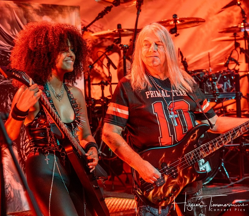 Ensuite, place aux vétérans du metal teuton! Primal Fear, toujours mené par l’inoxydable Ralf Scheepers (chant, muscles et puissance sonore calibrée pour faire trembler les vitres), accompagné du rescapé et infatigable Mat Sinner à la basse (en mode sage et souriant après son long combat contre la maladie). On retrouve aussi le génialissime compositeur prolixe et magicien suédois du manche Magnus Karlsson (guitares, compositions et solos qui déboîtent), la virtuose et sublime Thalìa Bellazecca (guitare, ex-Frozen Crown, nouvelle venue qui fracasse), et André Hilgers derrière les fûts (batteur expressif et pile électrique).