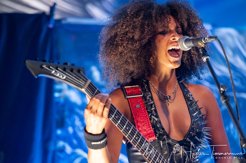 Eleine chauffe la salle à blanc, prouvant qu’on peut survivre à la viking-mania et rester classe à toute épreuve. Madeleine virevolte, Rikard grogne, Victor riffe — et on applaudit les valeureux remplaçants de la section rythmique, courageux, mais anonymes (le mystère reste entier pour cette chronique, mais visiblement, ils maîtrisent leur art et savent faire du bruit, donc tout va bien). Une performance très correcte grâce à l’énergie folle déployée par les trois principaux protagonistes qui alternent les attitudes metal, les headbanging et le chant, tout en sollicitant en permanence le public qui ne demande pas mieux. Bref, une très belle entrée en matière.