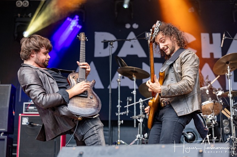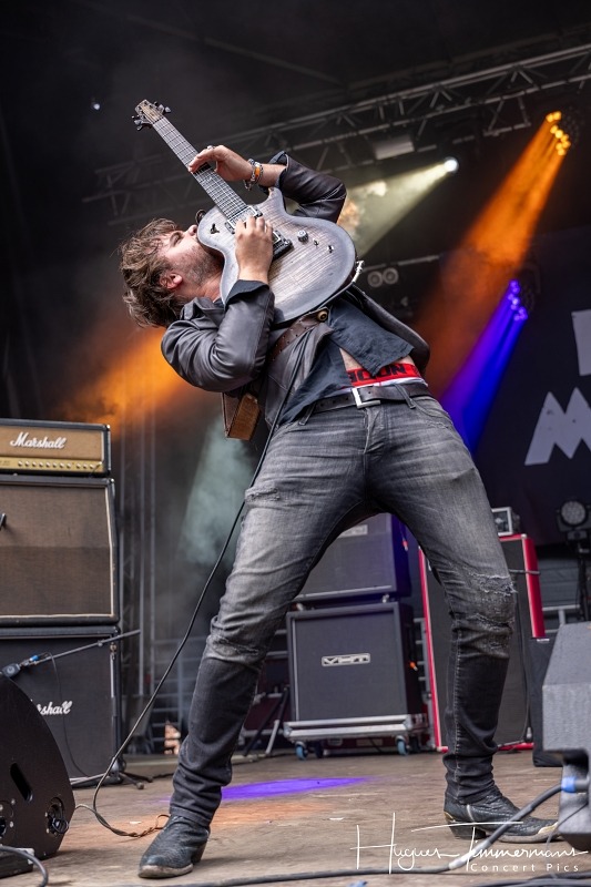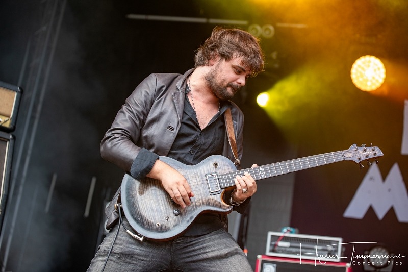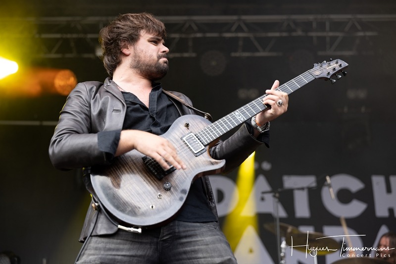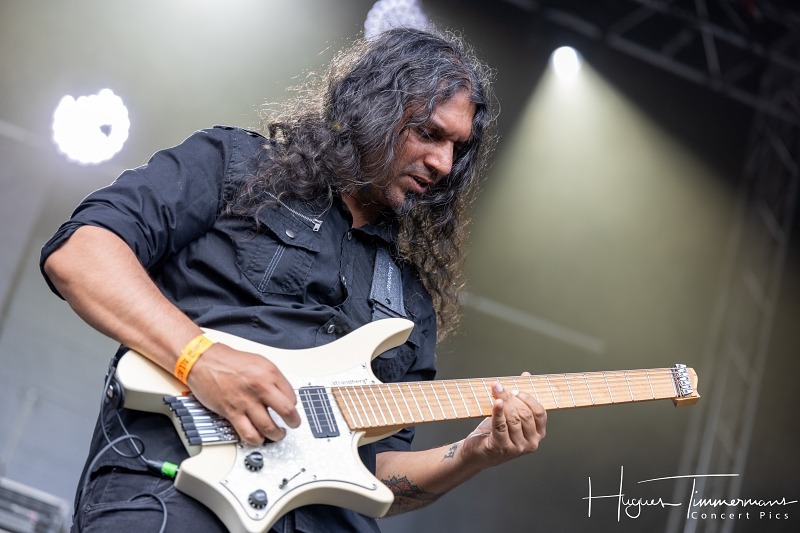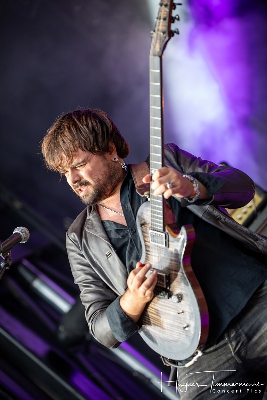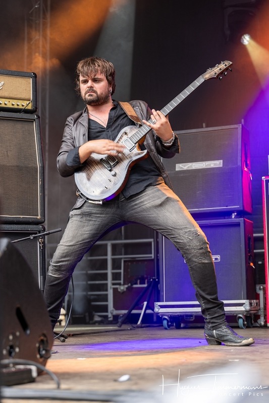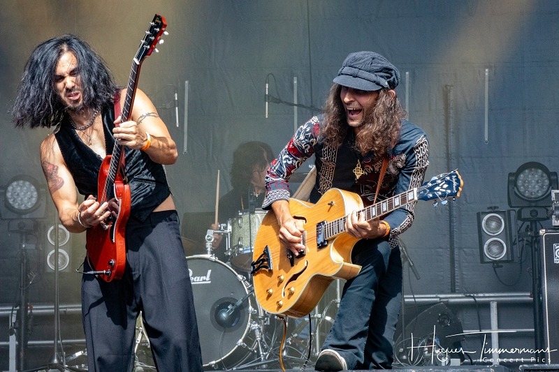 La journée passe très vite, signe que le programme plaît. Et il est déjà l’heure d’accueillir le premier gros morceau de la soirée: GOTUS. Mandy Meyer s’est taillé une solide réputation en ayant participé à des groupes monstrueux tels que Krokus, Gotthard, Asia, House Of Lords, Unisonic ou encore Cobra. Quelques années en arrière, un peu avant la pandémie, il rencontre Pat Aeby avec lequel lui vient l’idée de réunir quelques artistes suisses ayant joué dans Gotthard ou Krokus (vous savez à présent d’où vient le nom de groupe). Le groupe commence avec le chanteur Dino Jelusick (à l’affiche du jour 2) auquel succèdera finalement Ronnie Romero (Lords of Black, Rainbow, MSG, CoreLeoni, The Ferrymen, Vandenberg). Musicalement, ces titres fleurent bon le heavy aux accents blues. Une musique qui n’est pas sans rappeler Whitesnake à sa grande époque.