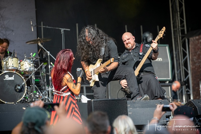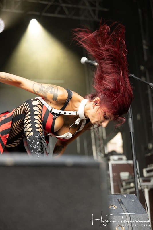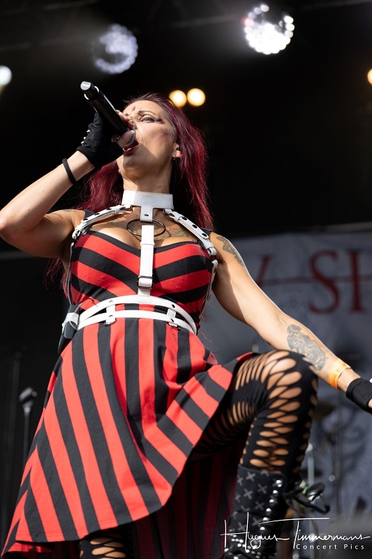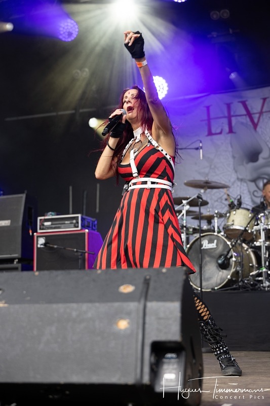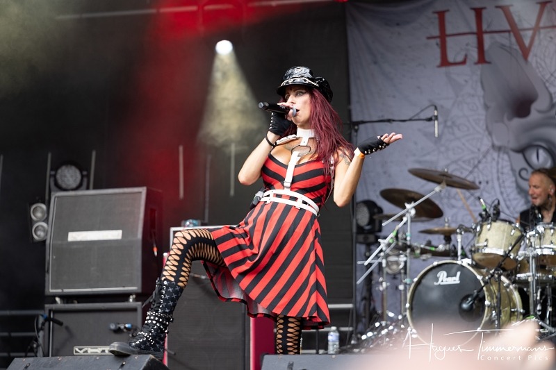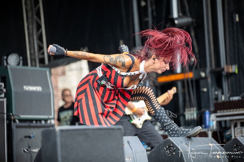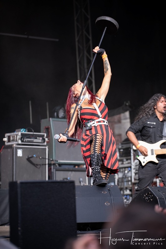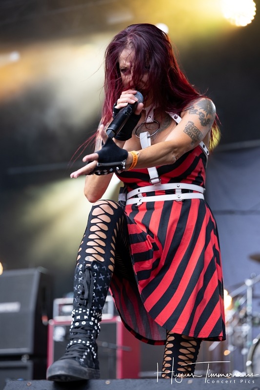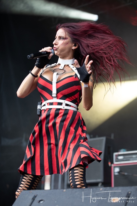 Au menu une setlist très dense de titres à vous décrocher les cervicales: « Forget My Name« , « Karma« , « Let Me Out« , « Syntetic« , « Hope Begins to Fade« , « Slave to the Machine« , « I Am the Storm« , « Antihero« , « The Process« , « Hypocrite« , « D.E.R. » et « King of Fools« . Les complices de la chanteuse Liv Jagrell sont le bassiste Daniel Skoglund, et les guitaristes Jay Matharu et Krille Kellerman ainsi que le batteur Per Bjelovuk. La complicité entre les protagonistes est évidente et le set de la tornade suédoise passe comme une lettre à la poste un jour sans grève. Liv se démène dans tous les sens et module sa voix tantôt en clair, tantôt en scream plus gutural, voire extrême. L’ambiance atteint son premier sommet de la journée. Et le niveau ne va pas descendre avant longtemps.