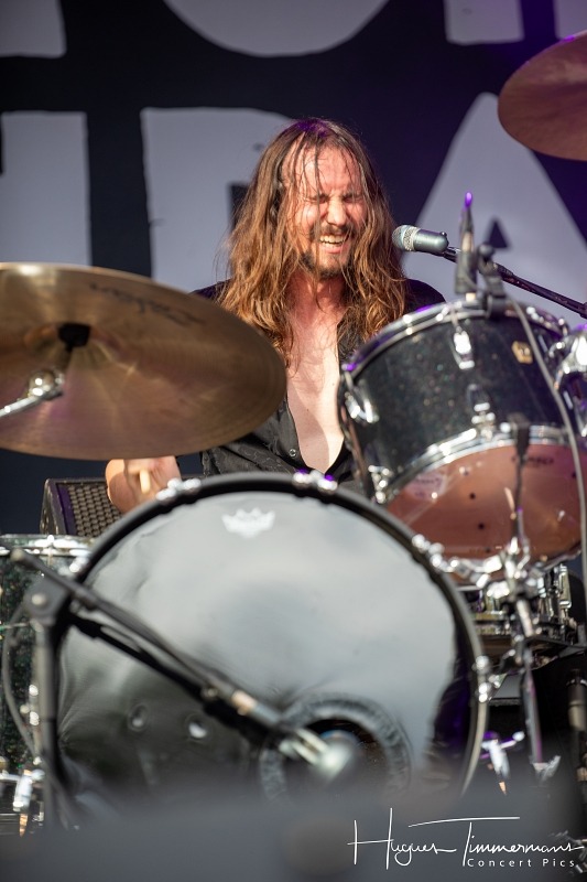 Le groupe parfaitement rodé sur scène (avec plus de 600 concerts déjà à son actif) enthousiaste les festivaliers avec une setlist décapante basée notamment sur les nouveaux titres comme « Koda« , « She Said« , « Hit and Roll » et bien d’autres. Des titres incroyablement accrocheurs grâce à une rythmique toujours efficace, des riffs de guitare puissants et une voix excellente dans une belle variété de registres. Ici encore, il y a fort à parier que le côté nostalgie est pour beaucoup dans le succès tant critique que populaire du trio. Mais attention, cette musique contient aussi des éléments de modernité qui font de ce répertoire bien plus qu’une pâle copie de ce qui se faisait dans les seventies. Bref, un groupe à très haut potentiel de succès. Les organisateurs ont eu le nez très fin jusqu’ici.