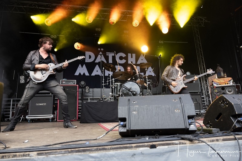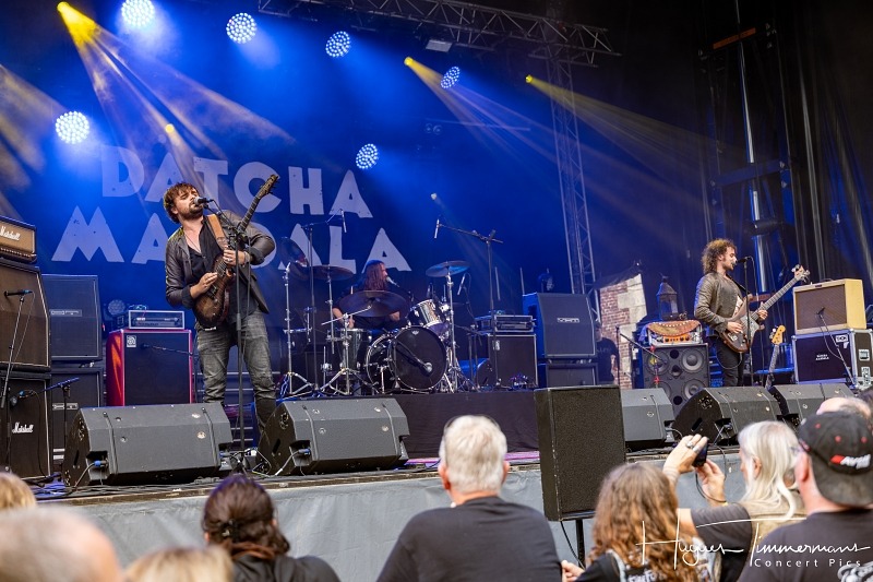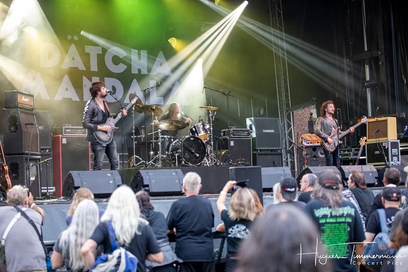 Dätcha Mandala est un groupe bordelais créé en 2009 que l’on peut franchement qualifier de power trio. Avec des modèles comme Led Zeppelin, Black Sabbath, Kyuss, Tool, Black Angels, Queens Of The Stone Age, et autres Hendrix), le heavy blues de Dätcha Mandala a un son très connoté 70s, basé sur des guitares puissantes, des voix magnifiques et une énergie débordante et communicative. Un blues rock puissant et inspiré aux accents psychédéliques, ce qui lui donne un groove hors du commun. Ce groupe présenté parfois comme rock alternatif se produit énormément en concert et gagne clairement à être connu par sa musique qui n’a pas tardé à convaincre l’ensemble des festivaliers, même ceux qui n’avaient jamais entendu parler de ce groupe auparavant (comme votre serviteur). Jean-Baptiste Mallet (batterie), Jérémy Saigne (guitare) et Nicolas Sauvey (basse et chant) n’ont pas chômé au cours de leur jeune carrière déjà riche de plusieurs pépites: “Rokh” sorti en 2017, “Hara” sorti en 2020, « The Last Drop » (EP) sorti en 2022 et le tout récent « Koda« sorti en avril 2024).