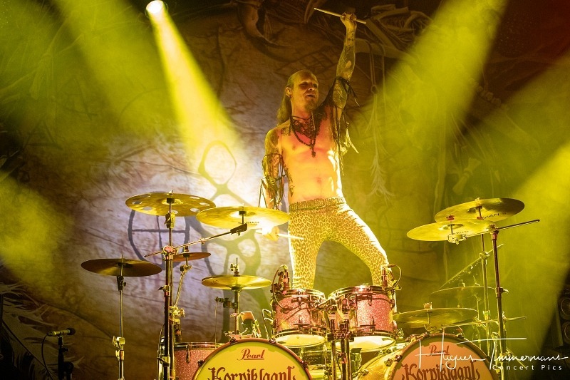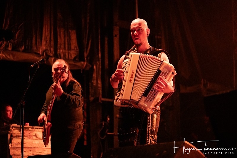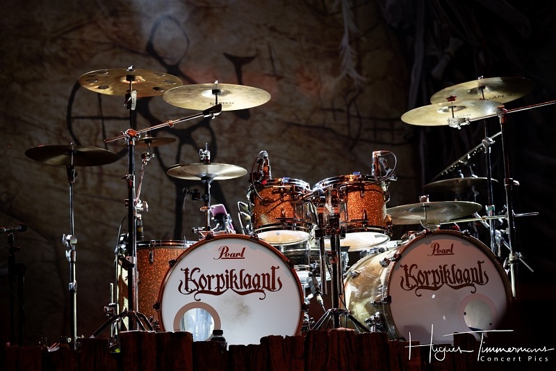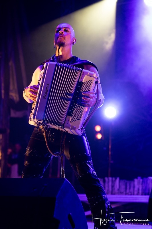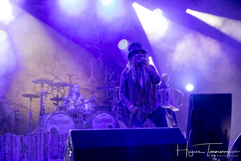 Changement de style radical pour finir la soirée puisque le choix des organisateurs s’est porté sur le groupe folk finlandais KORPIKLAANI, créé en 2003. Ce groupe de folk ayant ajouté des éléments metal à sa musique, sa présence se justifiait donc au Raismes Fest. Et comme les membres du groupe ont pour seul et unique objectif de faire la fête avec le public, il était logique de terminer la soirée en leur compagnie. L’ambiance est festive, on se croirait dans le Seigneur des Anneaux. Sur scène, une bande de joyeux drilles: Jonne Järvelä (voix, guitare acoustique, mandoline, violaphone), Olli Vänskä (violon), Cane (guitare et choeurs), Jarkko Aaltonen (basse), Sami Perttula (accordéon) et Samuli Mikkonen (batterie). Avec leurs tenues folkloriques étranges et leur entrain, ils arrivent encore à capter l’attention du public, même si les premiers festivaliers commencent à quitter les lieux pour prendre des forces en vue de la deuxième journée.