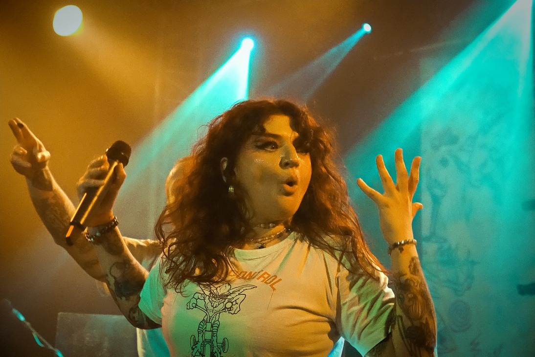 Karoline Rose – SUN – nous a ensuite embarqués à la découverte de sa Brutal Pop, et le moins que l’on puisse dire, c’est que ce qualificatif décrit parfaitement son univers. En format trio, l’artiste déploie une énergie brute et maîtrisée, où se mêlent refrains pop accrocheurs et déflagrations metal.